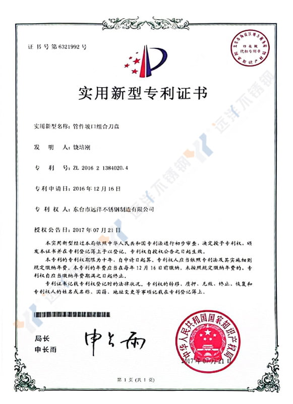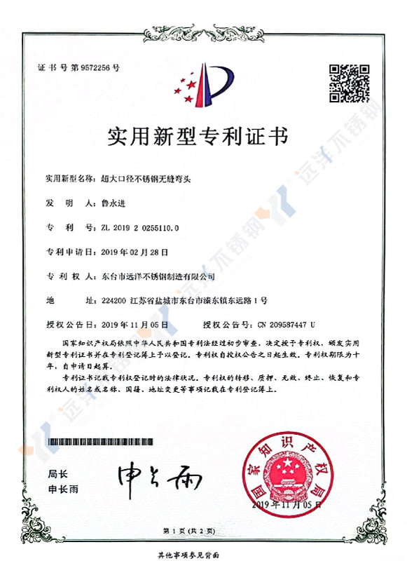 科技进步奖(不锈钢大口径薄壁弯头加工关键技术及产品开发)